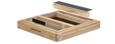 geleimt und verschraubt, mit seitlichem Aufstieg und zusätzlichem Flugloch, Inhalt ca. 5 Liter Wir empfehlen den Innenanstrich mit Bottichlack Art. 2127 oder ApiDana® Futterzargen Lack Art. 21275