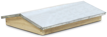 massiv und aus astfreiem Holz. Mit verzinkter Blechhaube in einem Stück und umlaufendem Dachüberstand.