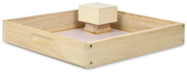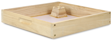 mit Eck-Aufstieg und Domabdeckung. Verleimt und geschraubt, Inhalt ca. 10 Liter. Vor Gebrauch den Innenraum inkl. Eck-Aufstieg mit Bottichlack Art. 2127 oder ApiDana® Futterzargen Lack Art. 21275 streichen