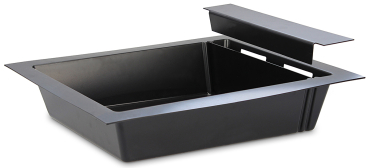 aus 2 mm starkem Kunststoff mit Winkelabdeckung und Alu-Lochblech, zur Auflage auf den Falz einer Leerzarge, Größe ca. 47,8 x 40,5 x 9 cm
