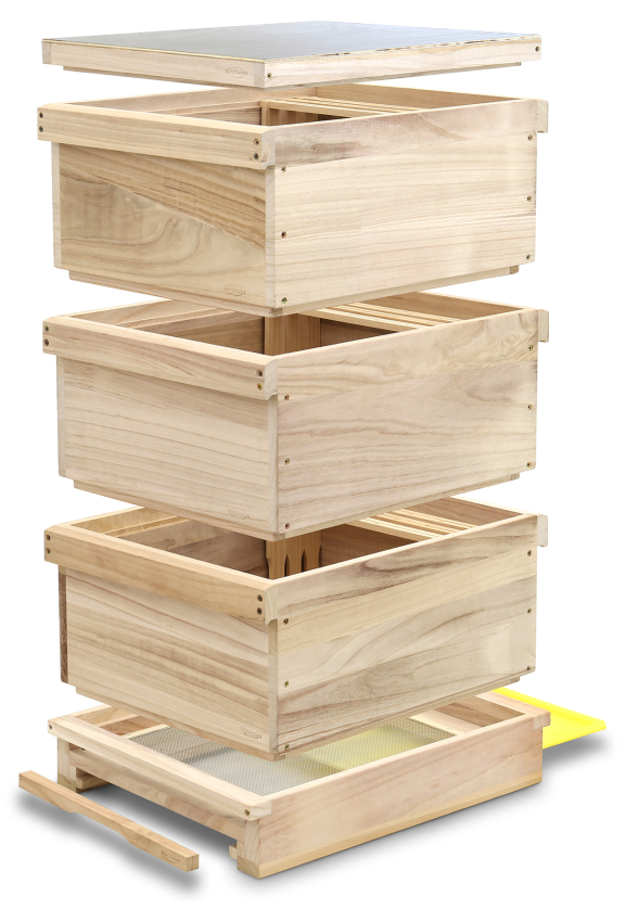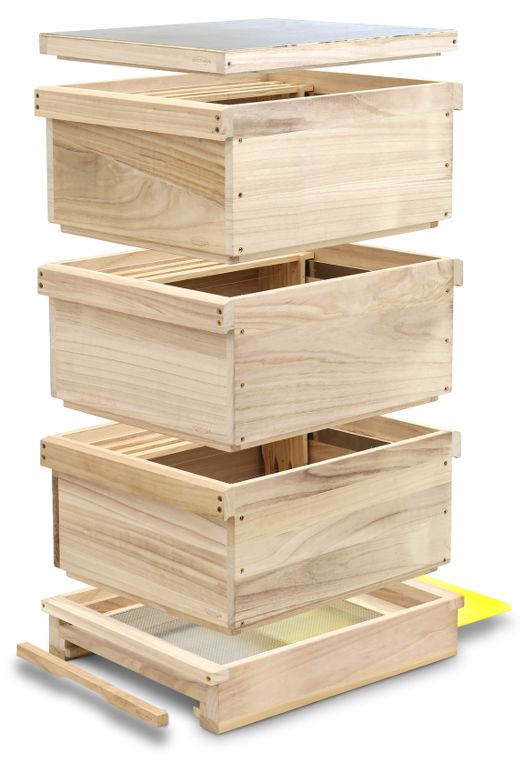 ein Flachboden mit Lüftungsgitter, Fluglochkeil und Bodenschieber mit Varroa-Zählkaros