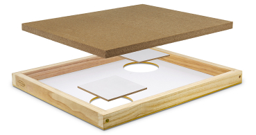 inkl. Dämmplatte und zwei Spundlöchern mit separaten Abdeckungen. Werden diese gegen zwei Bienenfluchten (Art. 2180) getauscht ist der Innendeckel auch als Honigentnahmeschied nutzbar
