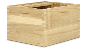 für 10 Rähmchen Dadant Blatt Brut Größe 470 x 300 mm, mit Holz-Abstands- streifen und gezinkten Eckverbindungen. Außenmaß 43 x 50 cm, Höhe ca. 31,5 cm, Gewicht ca. 4 kg
