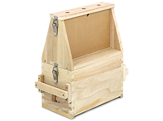 Zur Präsentation in der Schule, auf dem Wochenmarkt oder vor den Jungimkern. Bodenzarge mit gezinkten Eckverbin-dungen und seitlichen Tragegriffen zur Aufnahme von bis zu fünf Rähmchen oder vier Rähmchen und einer Futtertasche. Die Königin-Wabe befindet sich in einer konisch zulaufenden, gläsernen Aufsatzzarge. Durch ein Absperrgitter wird die Königin an einem Abstieg gehindert, wird aber gleichzeitig versorgt. Zum Transport in die Schule oder auf den Markt können die beiden Schauglasscheiben verdunkelt werden. Auch diese beidseitige Verdunklung ist im Preis enthalten.