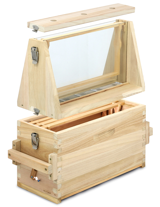 Aufsatzzarge passend für ein Rähmchen Zander 477 x 220 mm oder Langstroth 482 x 232 mm, befestigt mit Klapp-Scharnieren aus Edelstahl