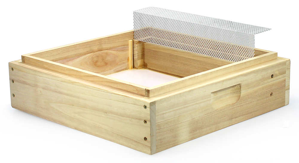 für ca. 10 Liter Flüssigfutter mit seitlichem Aufstieg und stabilem Alu-Lochwinkel. Wir empfehlen den Innenanstrich mit Bottichlack Art. 2127 oder ApiDana® Futterzargen Lack Art. 21275