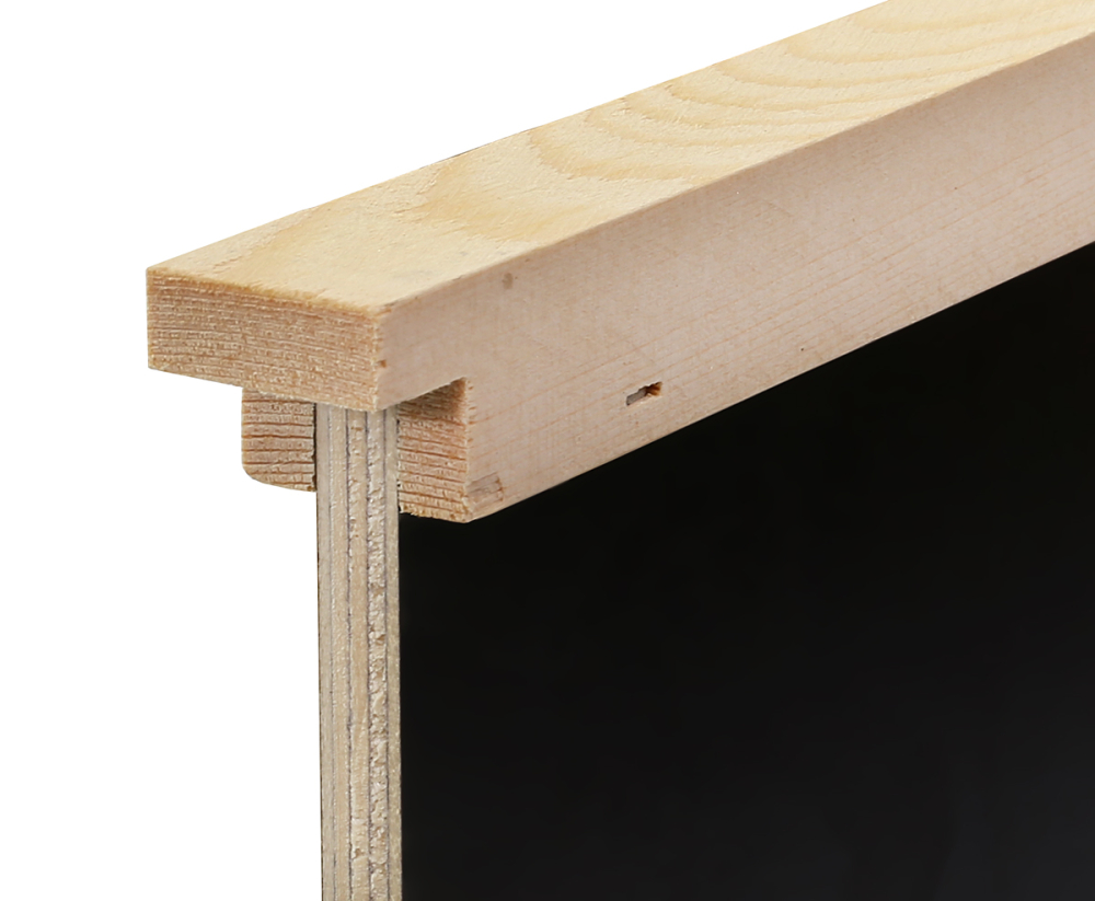 Hergestellt aus 8 mm starkem und wasserfest verleimten Sperrholzmaterial und einem Vollholz-Oberträger, zum Imkern im angepasstem Brutraum durch Einsatz des Holz-Eingschiedes als Blindwabe Länge Oberträger 477 mm, Länge Schied 420 mm, Gesamthöhe 220 mm Weitere Einengschiede finden Sie hier
