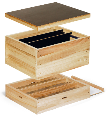 ein 3er Ablegerboden mit Edelstahl Varroagitter und Bodenschieber