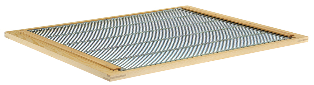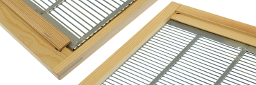 verzinktes Metall-Absperrgitter 394 x 456 mm, im Holz- rahmen genietet und mit zwei Leisten vor Verrutschen gesichert, Außenmaß ca. 520 x 420 mm, Höhe 12 mm