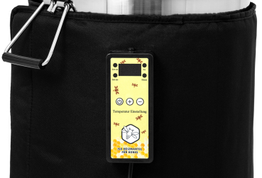 Isolierter Heizmantel zum Honig Erwärmen als Unterstützung zum Abfüllen oder Rühren. Dazu wird der Heizmantel um den Abfüllkübel oder das Rührwerk gelegt und mittles großzügigem Klettverschluss verschlossen. Die Temperatureinstellung erfolgt gradgenau, die Zeitsteuerung kann von 1 bis 24 Stunden über die digitale Anzeige eingestellt werden