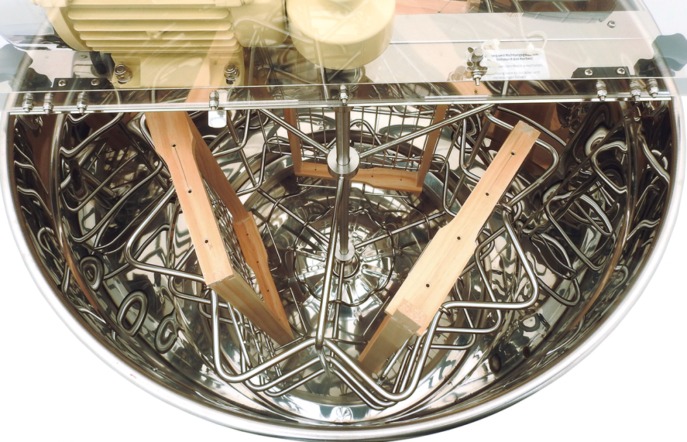 Mit 3 Einhängegittern (im Lieferumfang enthalten) ist auch der Tangentialbetrieb für 3 Waben bis 305 mm Höhe möglich z.B. Dadant Blatt oder Dadant US
