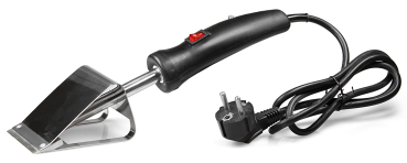 in der Anwendung wie eine Entdecklungsgabel, aufgrund der 7 cm breiten und beheizten Schneide ist das Arbeiten sehr komfortabel, 230 V / 65 W