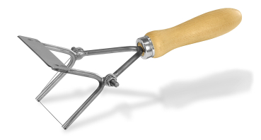 aus Edelstahl, mit Holzgriff, 6,5 cm breitem Schneidedraht und 9 cm langem Kratzer, Länge ca. 25 cm