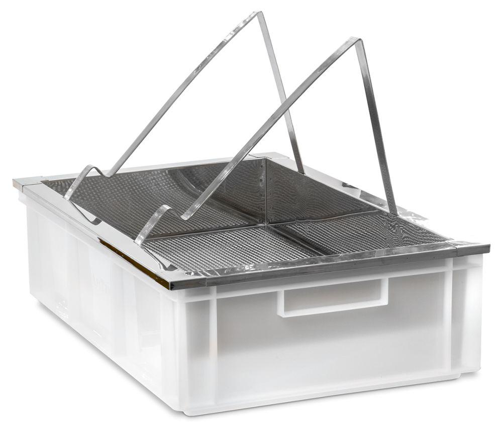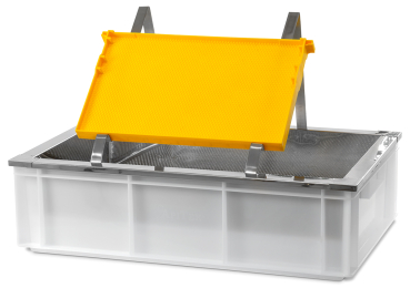 mit Kunststoffwanne, Edelstahleinsatz mit Tropfblech, Wabenhalter von 31 cm Höhe und Wabenbock im Deckel Größe ca. 61 x 41 cm, Höhe 17 cm