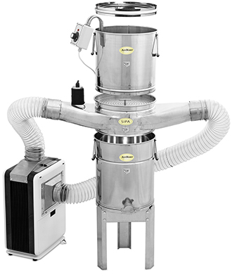Da der Honig langsam durch die Kaskade fließt, entsteht ein Entzug der Feuchtigkeit. Die ideale Fließgeschwindigkeit des Honigs beträgt ca. 15 kg in 30 Minuten. Durch eine regelbare Wärmelampe in der Luftzufuhr wird die Temperatur reguliert. Da der Honig mit niedriger Temperatur oder gar nicht beheizt wird, bekommt dieser auch keine Hitzeschäden. In Verbindung mit dem SIPA® Luftentfeuchter Art. 5955 ergibt sich ein Honigmischgerät mit Trockenfunktion mit folgenden Eigenschaften: