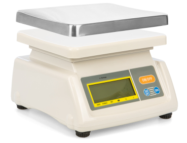 fertig geeichte Tischwaage mit LCD Brutto- oder Nettogewichtsanzeige, Tara-Ausgleich, rückseitiger Wasserwaage und höhenverstellbaren Standfüßen. Der Betrieb ist sowohl per Netzanschluss 230 V als auch im Akkubetrieb möglich Wägebereich: bis 6 kg in 2 g Schritten, 6–15 kg in 5 g Schritten. Edelstahl-Wägeplatte von 23 x 19 cm, Größe: ca. 24,5 x 25,5 x 15,7 cm, Gewicht 2,4 kg Akku nicht enthalten, bitte separat mitbestellen: Art-Nr. 6323