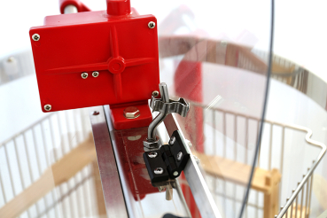 Handantrieb mit Getriebe aus Stahlzahnrädern, aufgebaut auf massiver Edelstahltraverse