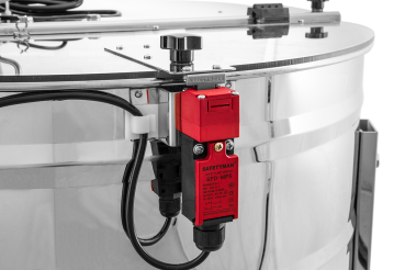 Leistungsstarker Motor-Unterantrieb 230 V / 370 W mitvollautomatischer Steuerung, eigener Programmwahl und separatem Sicherheitsschalter am Deckel