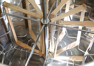 Mit 4 Einhängegittern Art. 51495 (nicht im Lieferumfang enthalten) ist auch der Tangentialbetrieb für 4 Waben bis 307 mm Höhe möglich z.B. Dadant Blatt oder Dadant US
