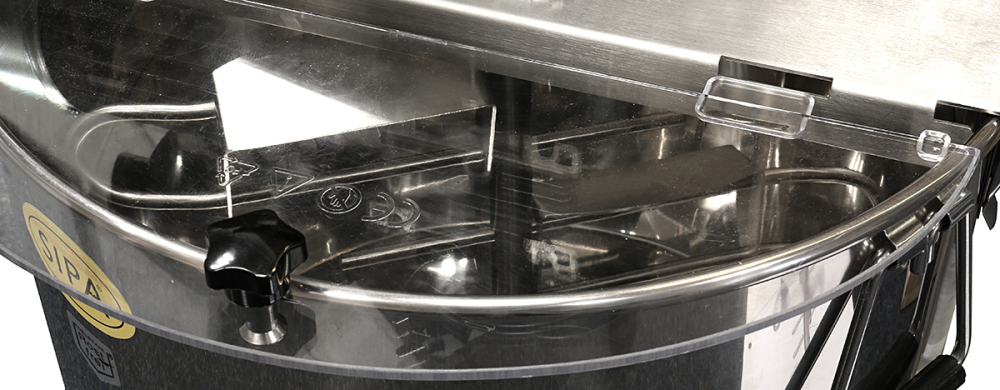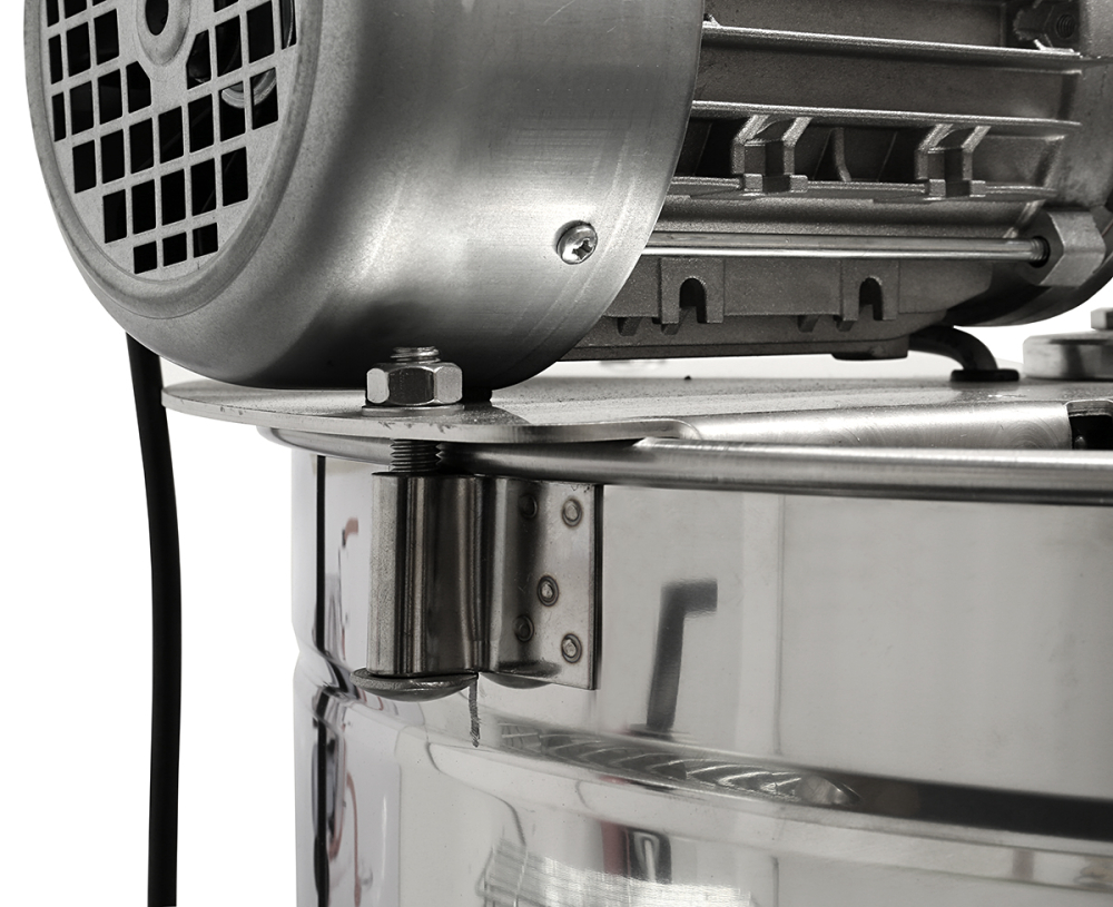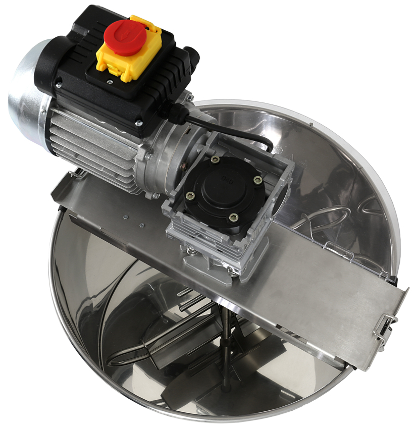 Mit schaufelartigen Rührflügeln zum Mischen und Rühren von Honig auch bei unterschiedlichen Füllmengen. Elektro- motor 230 V / 250 W mit Getriebeuntersetzung auf ca. 33 Umdrehungen pro Minute, auch für den Dauereinsatz ge- eignet. Behälter und Rührflügel komplett aus Edelstahl, Quetschhahn mit bodengleichem Auslauf, Sicherheits- deckel. Lieferung inkl. zusätzlichem losem Auflagedeckel.