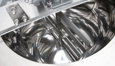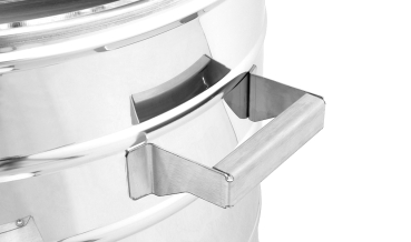 Sowohl Kessel, Rührflügel, Beschläge als auch das Gehäuse der Steuerung sind komplett aus Edelstahl