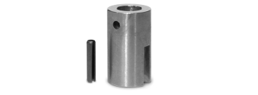 aus Edelstahl, passend für Korbwellen mit einem Durchmesser bis zu 14 mm, z. B. Imgut® Handschleudern, Antriebaufnahme 12 mm Durchmesser, mit Seitenschlitz (Höhe 20 mm, Breite 4 mm), Gesamthöhe 38 mm