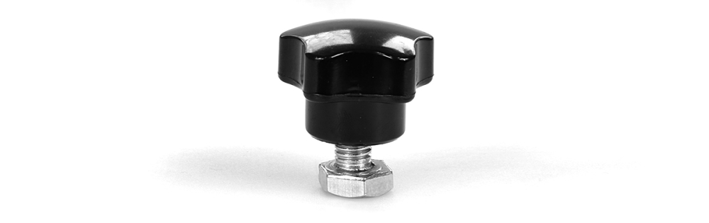 schwarzer Kunststoff Drehknauf mit Innengewinde und einer Schraube mit M8 Gewinde