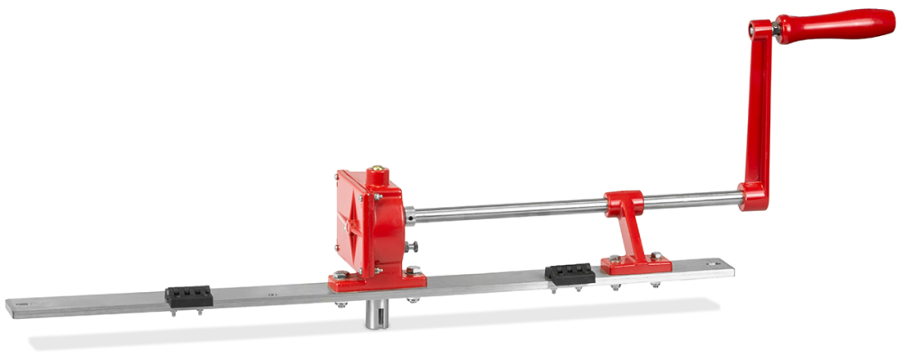 Freilaufgetriebe mit Rückdruckbremse aufgebaut auf Edelstahl-Traverse, mit Aufnahme für Wellen bis 14 mm, passend z.B. für die Schleudern 5432, 5440 und 5454