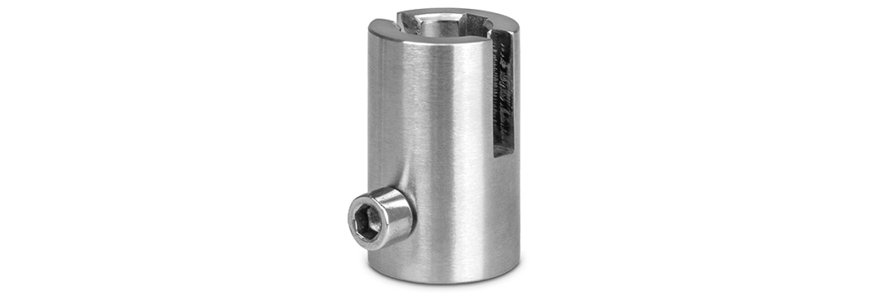 aus Edelstahl, passend für Korbwellen mit einem Durchmesser bis zu 14 mm, z. B. ApiNord® Honigschleudern oder Imgut® Motorschleudern. Antriebaufnahme 12 mm Durchmesser, mit Seitenschlitz (Höhe 20 mm, Breite 4 mm), Gesamthöhe 40 mm