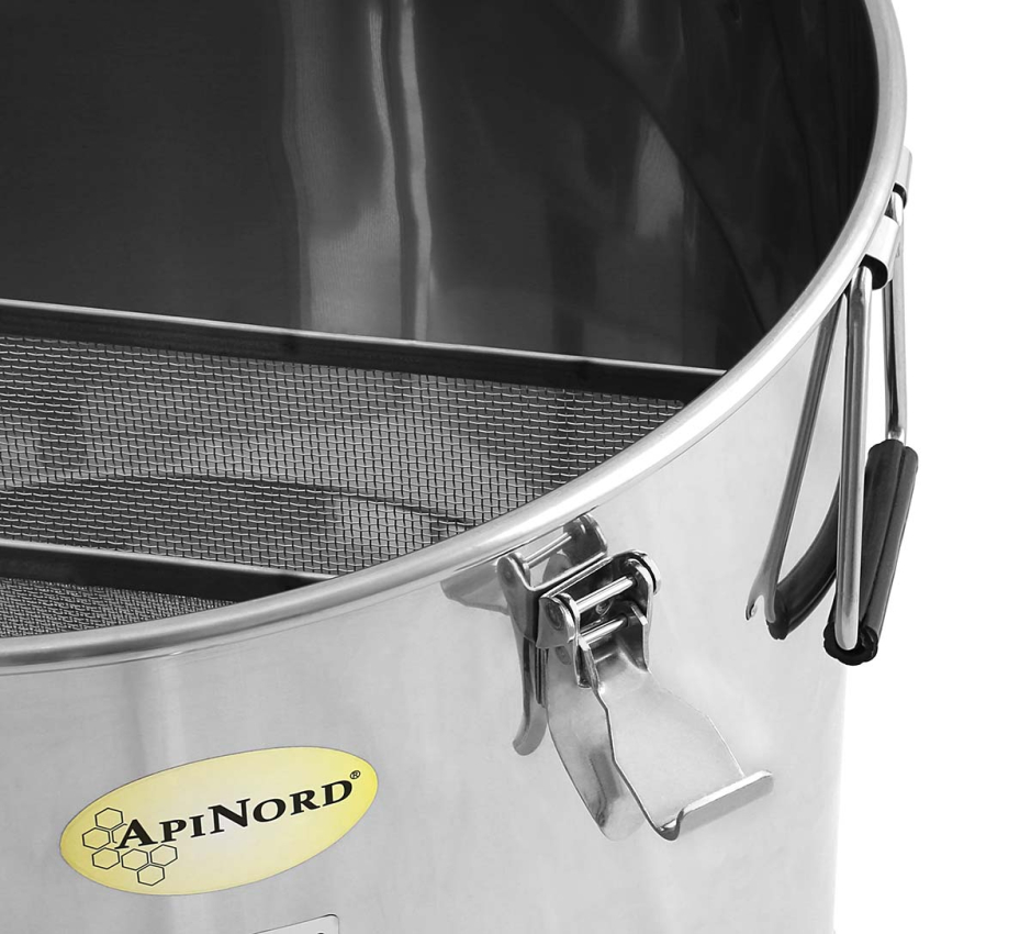 mit zwei großen Senkrechtsieben grob und fein und Spannverschlussdeckel