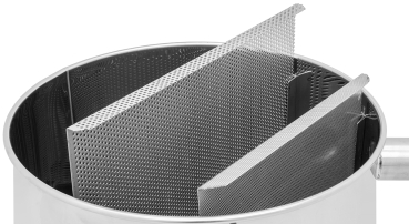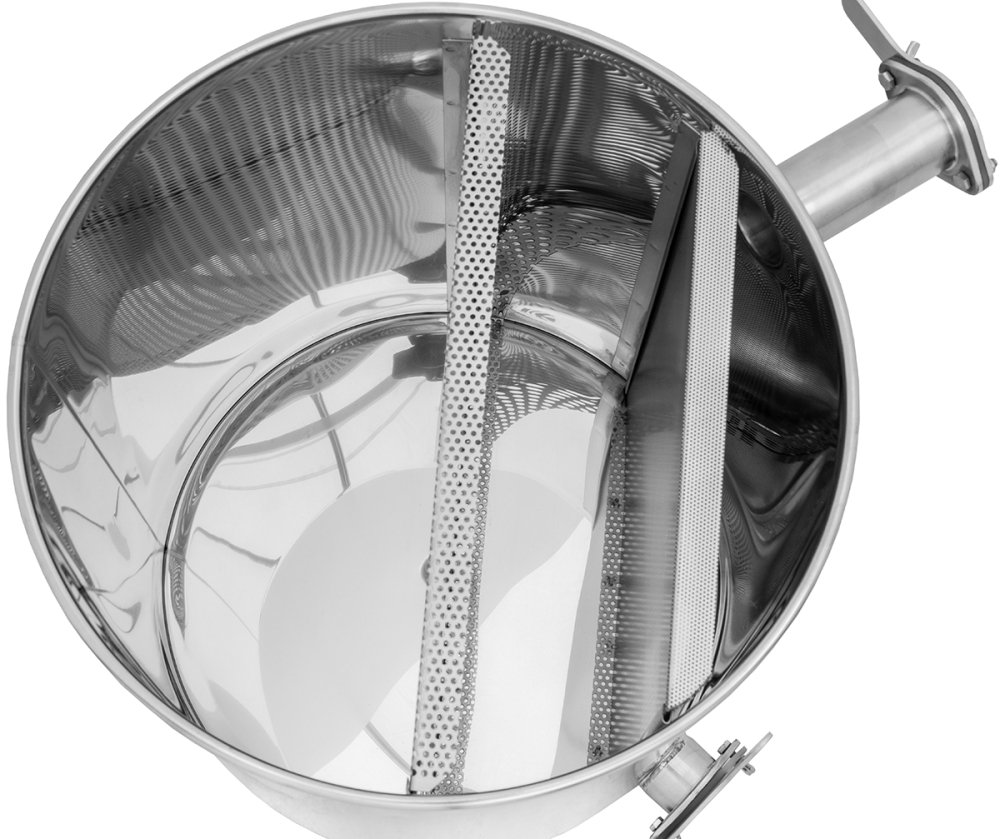 aus Edelstahl mit zwei Senkrecht-Gittersieben grob und fein und halbseitigem Auflagedeckel