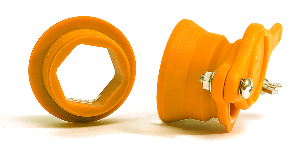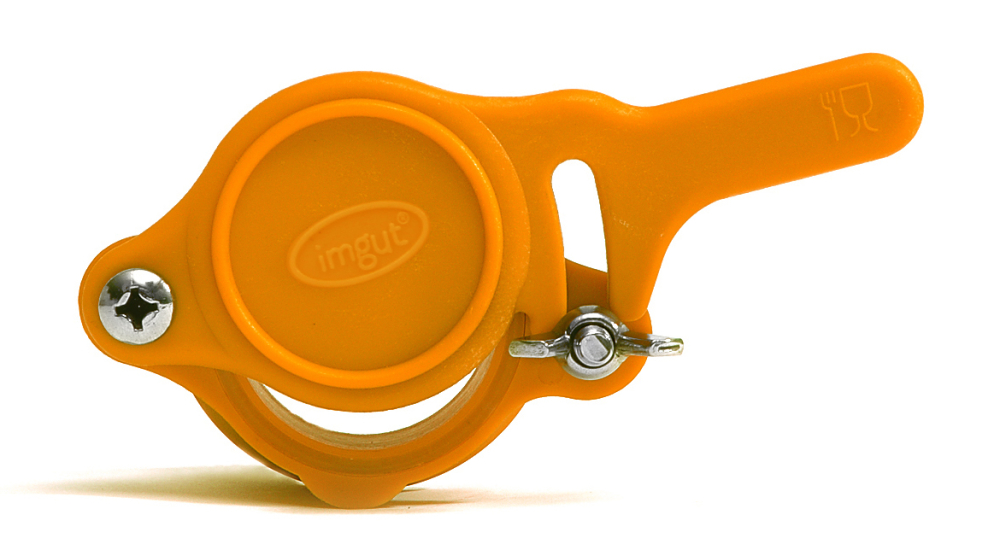 Kunststoff Quetschhahn mit runder Plastik-Kontermutter Ø 40 mm, Frontplatte mit verlängerter Führung und Federdruck