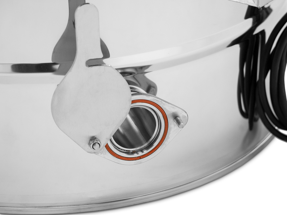 Zylindrischer Boden mit bodengleichem Edelstahl-Quetschhahn