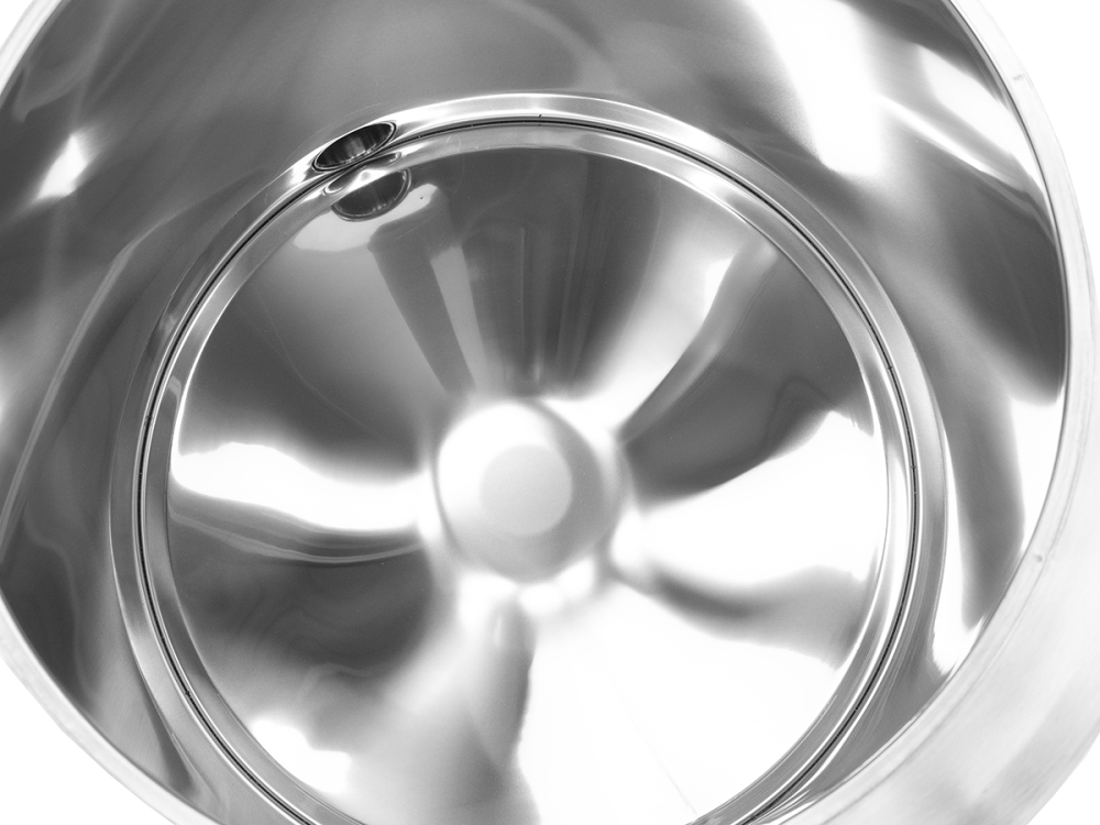 Zylindrischer Boden mit bodengleichem Edelstahl-Quetschhahn
