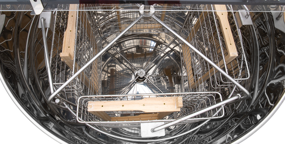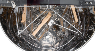 Manueller Wendekorb aus Edelstahl mit 4 Taschen für Waben bis 325 mm Höhe, z. B. Normalmaß, Zander, Kuntzsch-Hoch, Dadant US und Dadant Blatt Brutraum oder 8 Flach- bzw. Honigraumrähmchen bis 159 mm Höhe