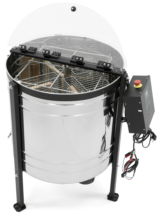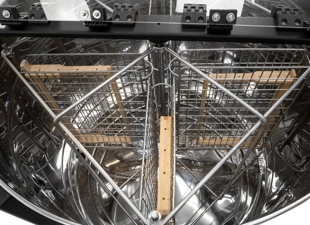 Selbstwende-Schleuderkorb aus Edelstahl mit 4 Taschen für Waben bis 310 mm Höhe, z. B. Normalmaß, Zander, Dadant sowie 8 Rähmchen bis 141 mm Höhe