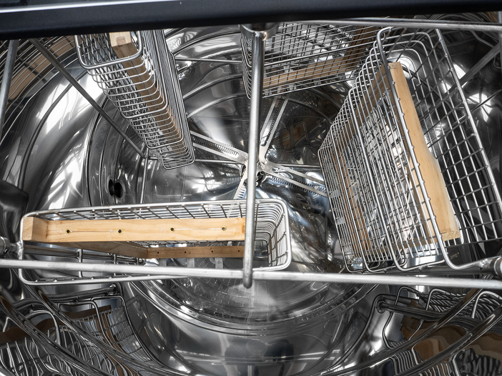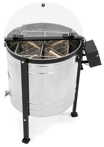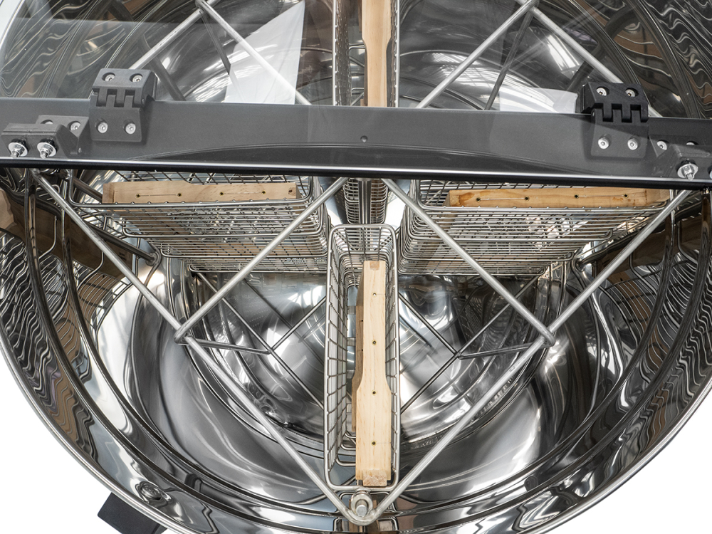 Selbstwende-Schleuderkorb aus Edelstahl mit 4 Taschen für Waben bis 245 mm Höhe, z. B. Normalmaß, Zander, Langstroth sowie 8 Rähmchen bis 110 mm Höhe