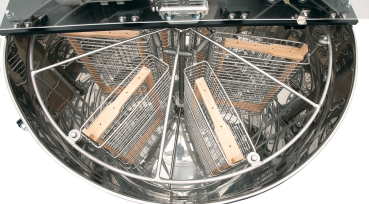 Selbstwende-Schleuderkorb aus Edelstahl mit 6 Taschen für Waben bis 250 mm Höhe, z. B. Normalmaß, Zander, Langstroth oder 12 Flach- bzw. Honigraumrähmchen bis 125 mm Höhe