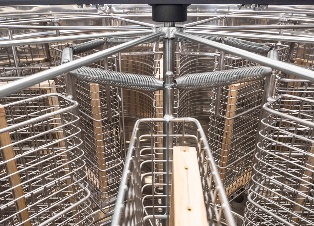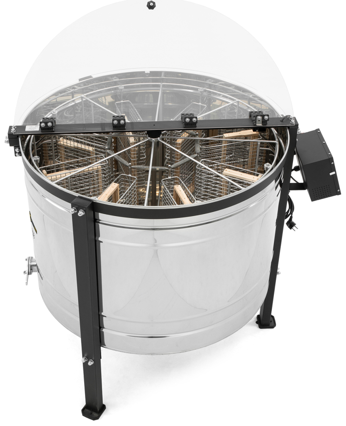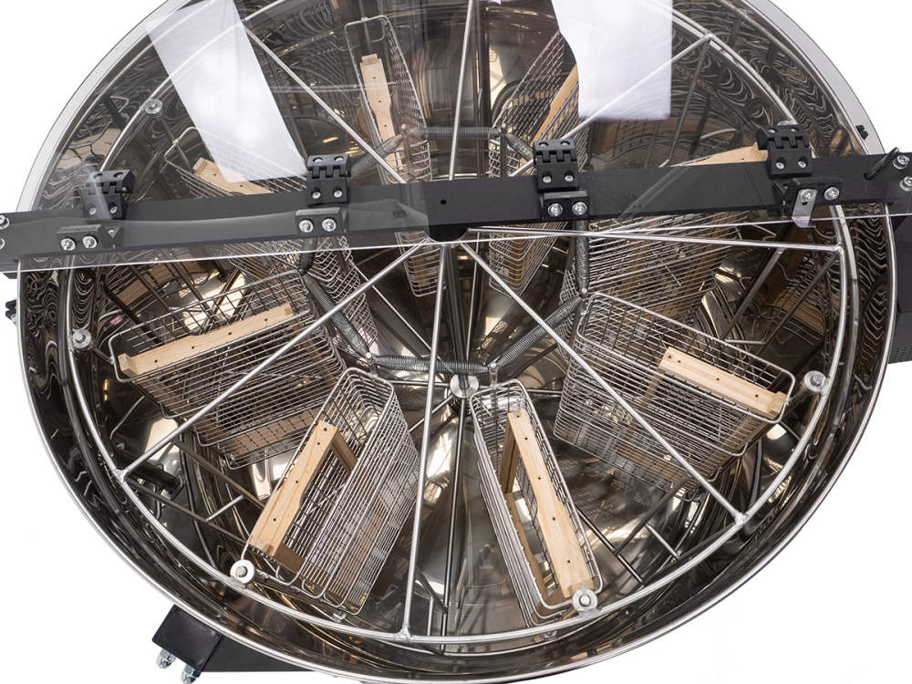 Selbstwende-Schleuderkorb aus Edelstahl mit 8 Taschen für Waben bis 250 mm Höhe, z. B. Normalmaß, Zander, Langstroth oder 16 Flach- bzw. Honigraumrähmchen bis 125 mm Höhe