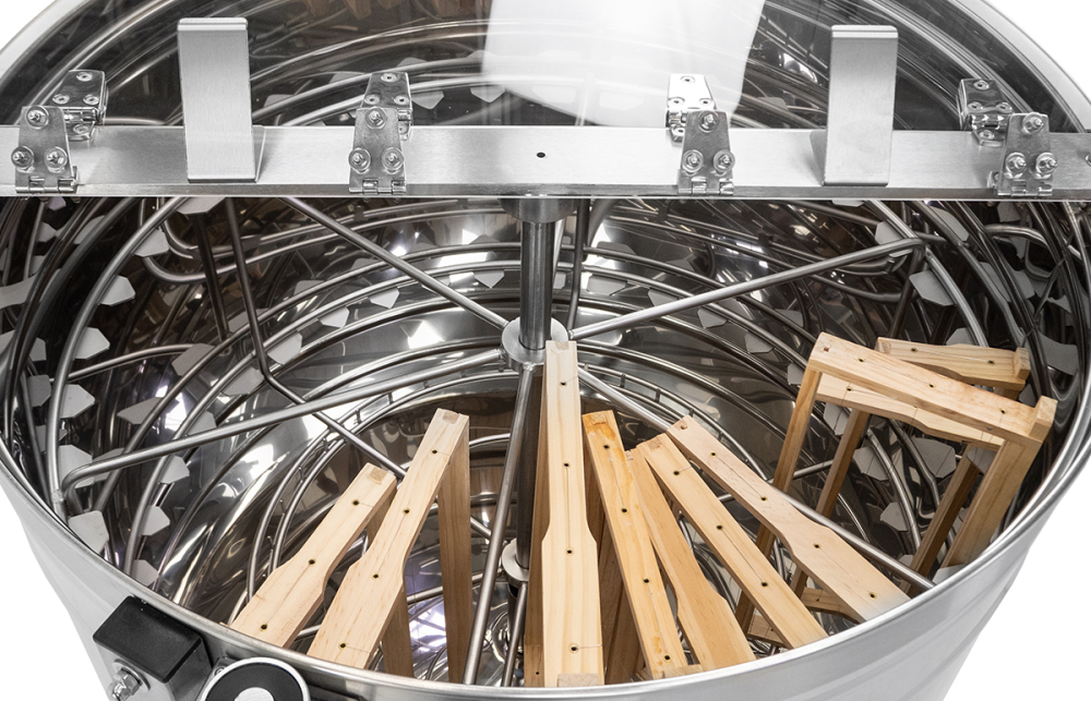 Sehr solider Selbstwende-Schleuderkorb aus Edelstahl für 18 Waben Normalmaß, Zander oder Langstroth bis zu einer Höhe von 225 mm oder 30 Waben bis zu einer Höhe von 183 mm