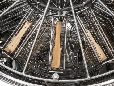 Sehr solider Selbstwende-Schleuderkorb aus Edelstahl mit 12 verstärkten Taschen für Waben bis 245 mm Höhe, z. B. Normalmaß, Zander, Langstroth