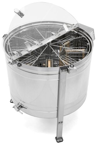 Sehr solider Selbstwende-Schleuderkorb aus Edelstahl mit 8 verstärkten Taschen für Waben bis 330 mm Höhe, z. B. Normalmaß 1,5, Zander 1,5, Dadant US Brut sowie 16 Rähmchen bis 159 mm Höhe