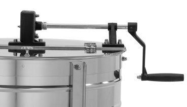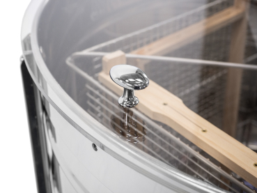 Tangential Rundgitterkorb aus Edelstahl mit Mittelwelle passend für 4 Rähmchen bis 310 mm Höhe, z. B. Normalmaß, Zander, Kuntzsch-Hoch oder Dadant US sowie 8 Flach- oder Honigraumrähmchen bis 110 mm Höhe