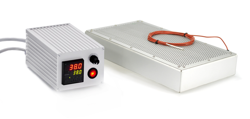 Zum Eigenbau eines Wärmeschrankes, z.B. aus einem ausgedientem Kühlschrank oder Bienenkasten. Gefertigt in Deutschland aus Komponenten der Industrietechnik. Die Heizeinheit ist mit einem laufruhigen Gebläse ausgestattet, welches eine nahezu geräuschlose Luftumwälzung ermöglicht. Über die Steuereinheit T-210 kann der Aufwärmprozess digital eingestellt und überwacht werden.