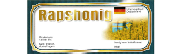 selbstklebend, mit Aufdruck „Rapshonig“
