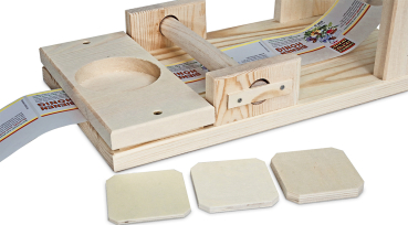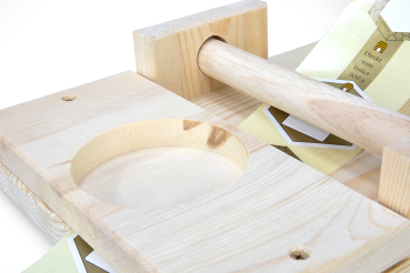 für Etiketten-Rollen ab 25 mm Innendurchmesser und Gläser bis ca. 9 cm Außendurchmesser, zum gleichmäßigen aufkleben. Einfach das passende Unterlegholz einsetzen. Im Lieferumfang sind 3 verschieden hohe Unterleghölzer enthalten. Außenmaß ca. 42 x 23 cm, Höhe ca. 18,5 cm Gewicht 2 kg