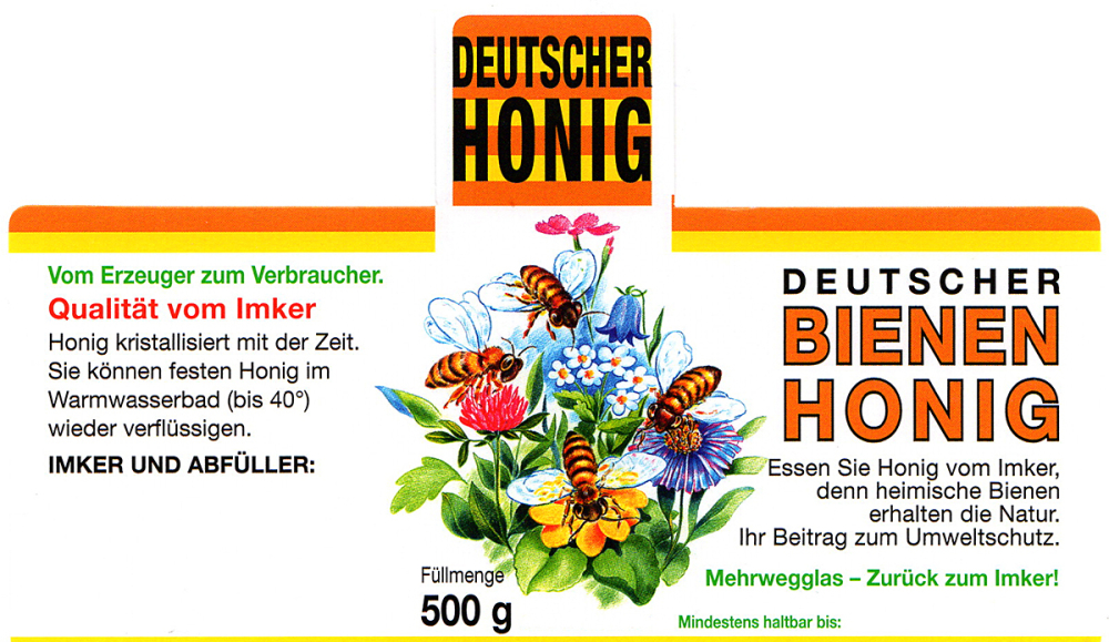 mit Deckellasche und Aufdruck „Deutscher Bienenhonig“ ohne Sortenbezeichnung 100 Stück