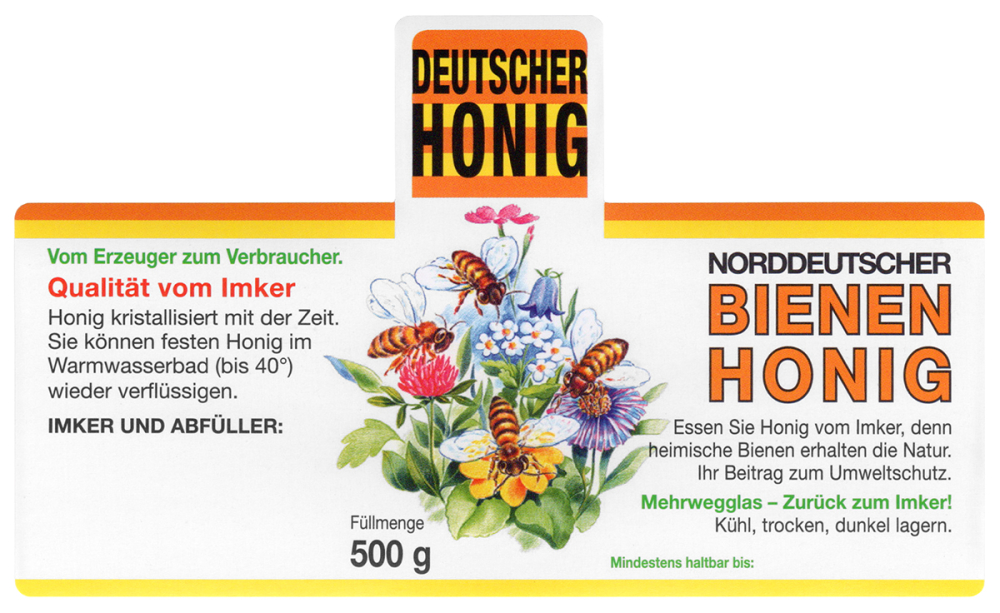 mit Deckellasche und Aufdruck Region + Bienenhonig ohne Sortenbezeichnung 100 Stück Wählen Sie bitte die gewünschte Region aus.