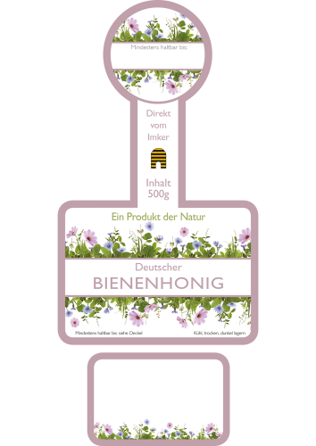 selbstklebend mit Aufdruck „Deutscher Bienenhonig“ ohne Sortenbezeichnung Zusätzlich mit Rückseitenetikett für die Adresse Lanhaus II, 100 Stück