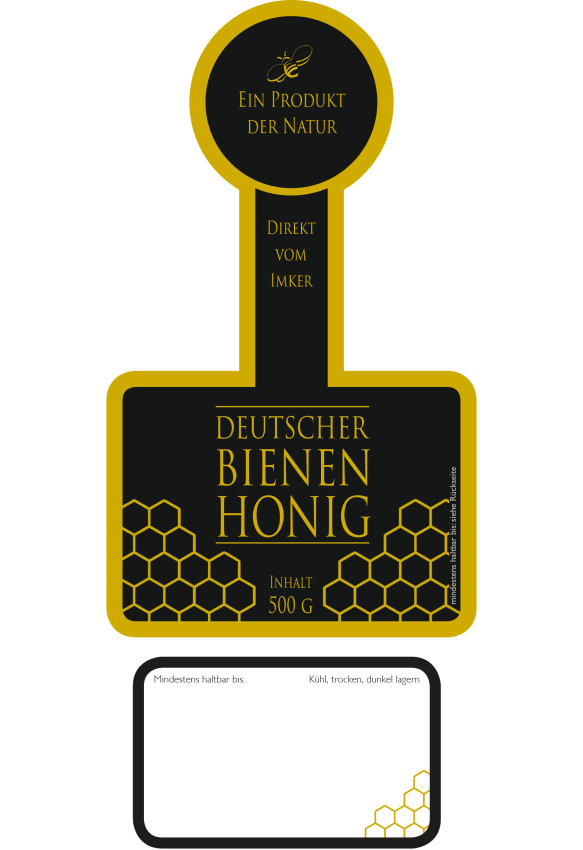 selbstklebend mit Aufdruck „Deutscher Bienenhonig“ ohne Sortenbezeichnung Zusätzlich mit Rückseitenetikett für die Adresse 100 Stück